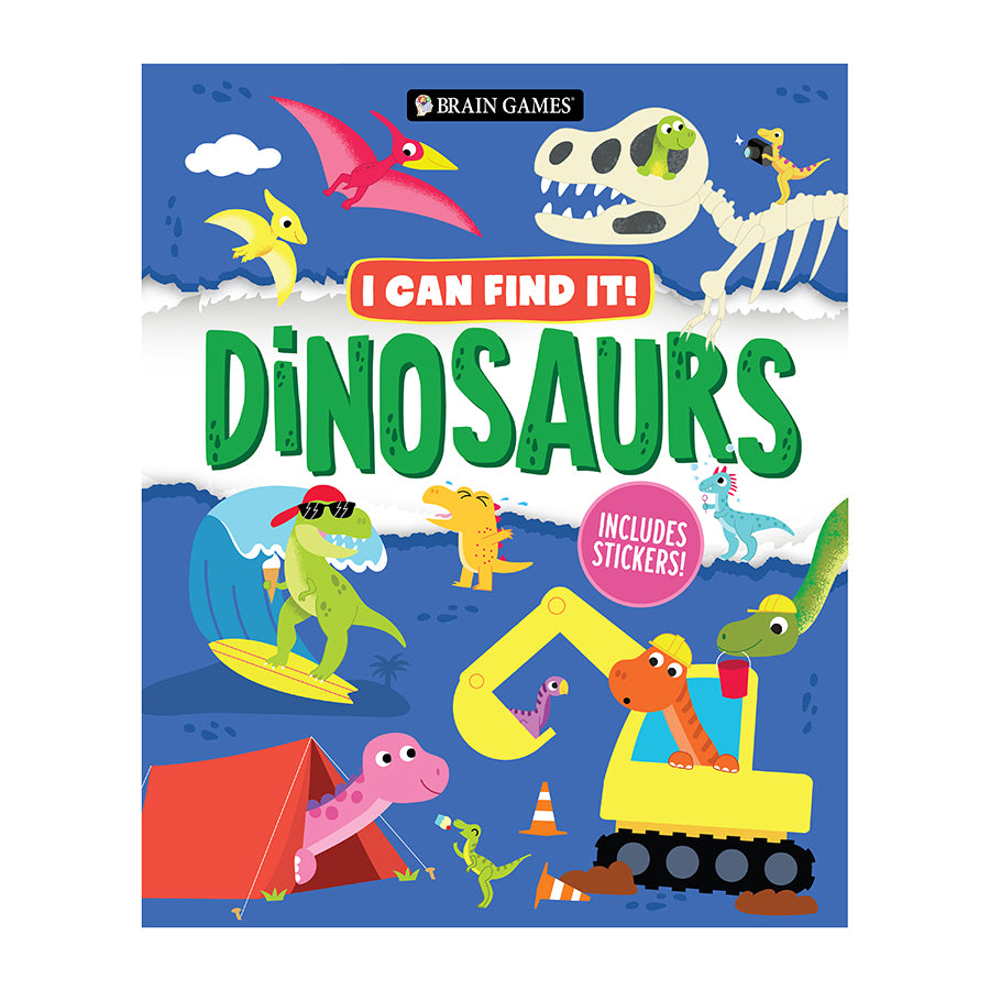 Join this rawr-some adventure as these busy dinosaurs visit a museum, work on a construction site, have a campout, and more in Brain Games I Can Find It! Dinosaurs. First, kids add stickers to the side panel and then search to find each object. Once they complete the page, they can turn to the back of the book for additional items to find!