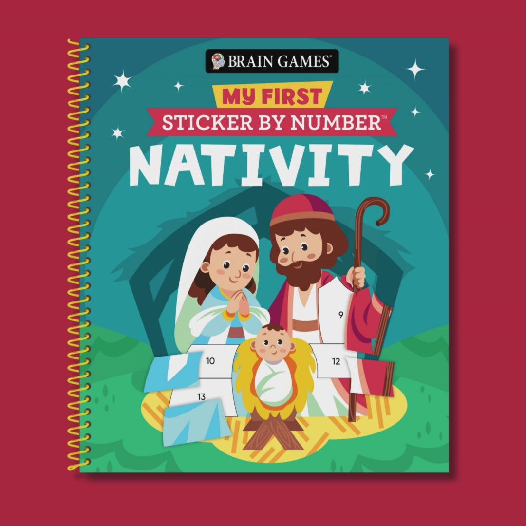 Step into the heartwarming tale of Jesus's birth with Brain Games My First Sticker by Number Nativity.