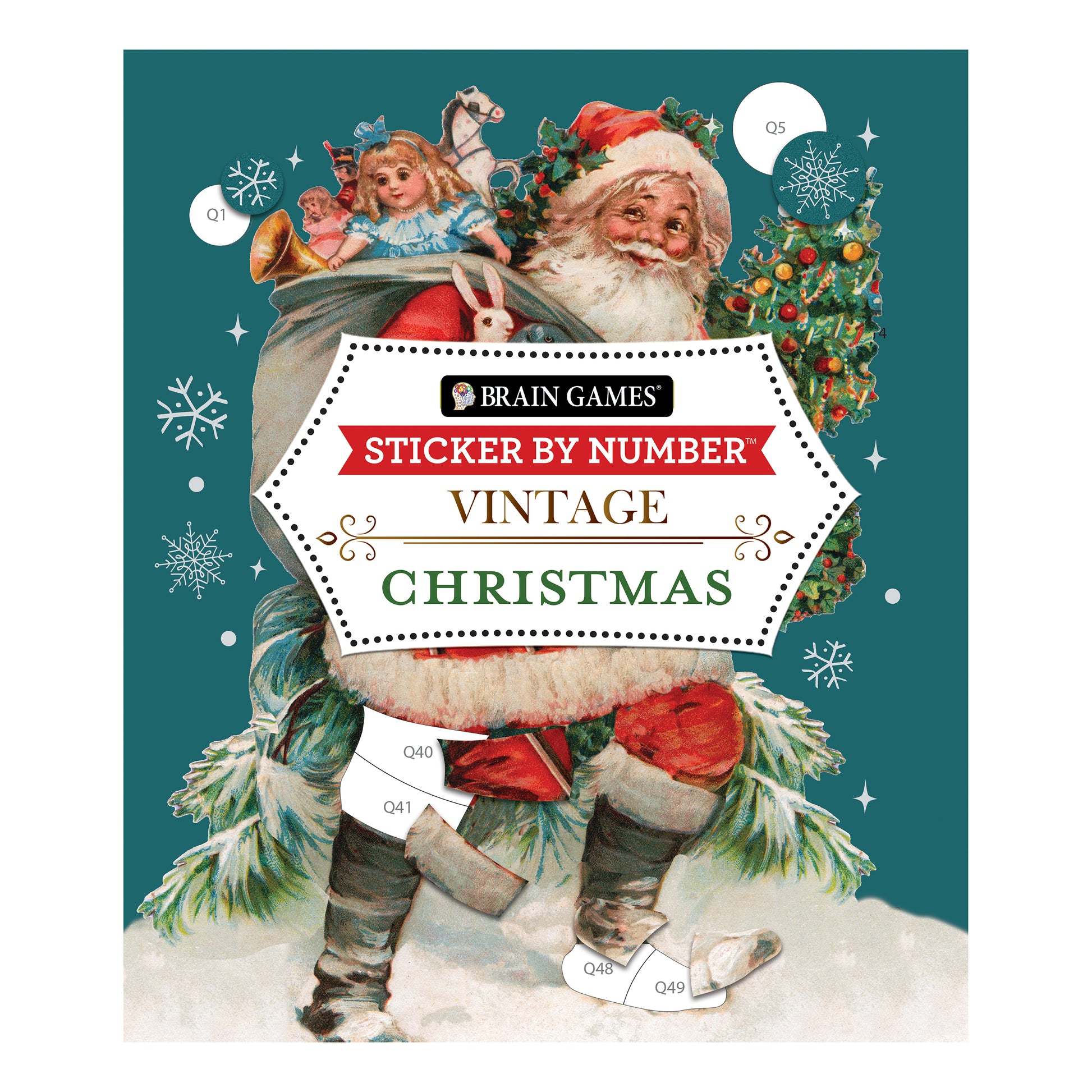 - Features 28 vintage Christmas images to sticker, including Santa Claus, Christmas trees, kids sledding, angels, bells, and holly.