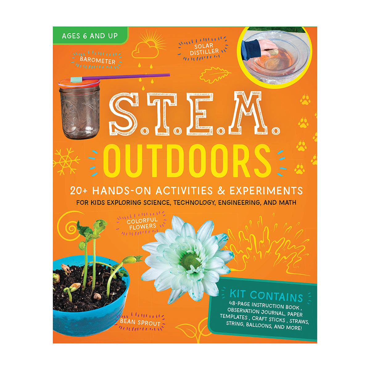 Explore STEM topics and have fun! This kit with instruction book contains more than 20 experiments and activities that involve nature and the outdoors or that take place outdoors.